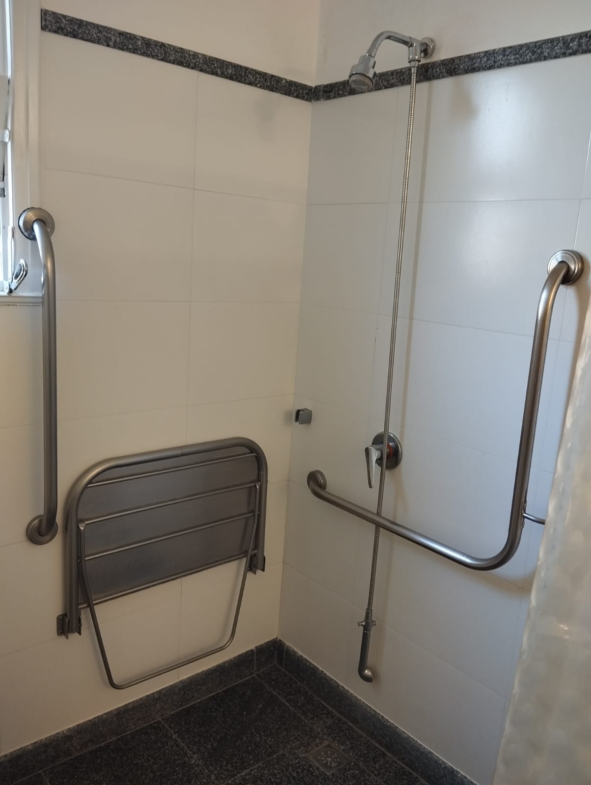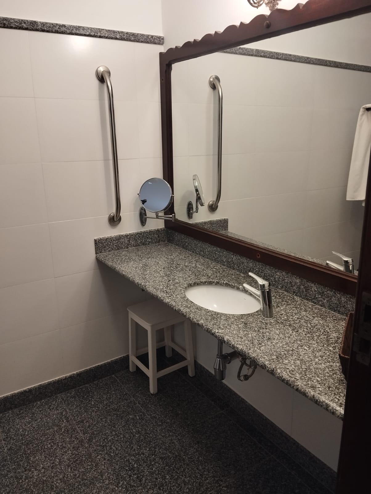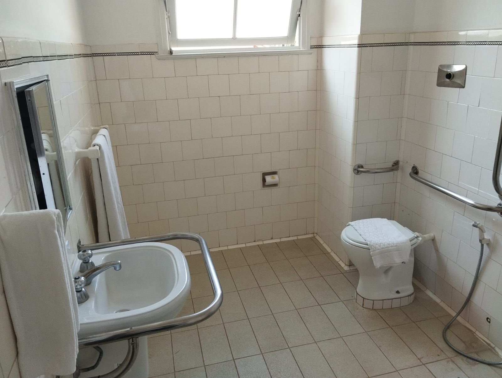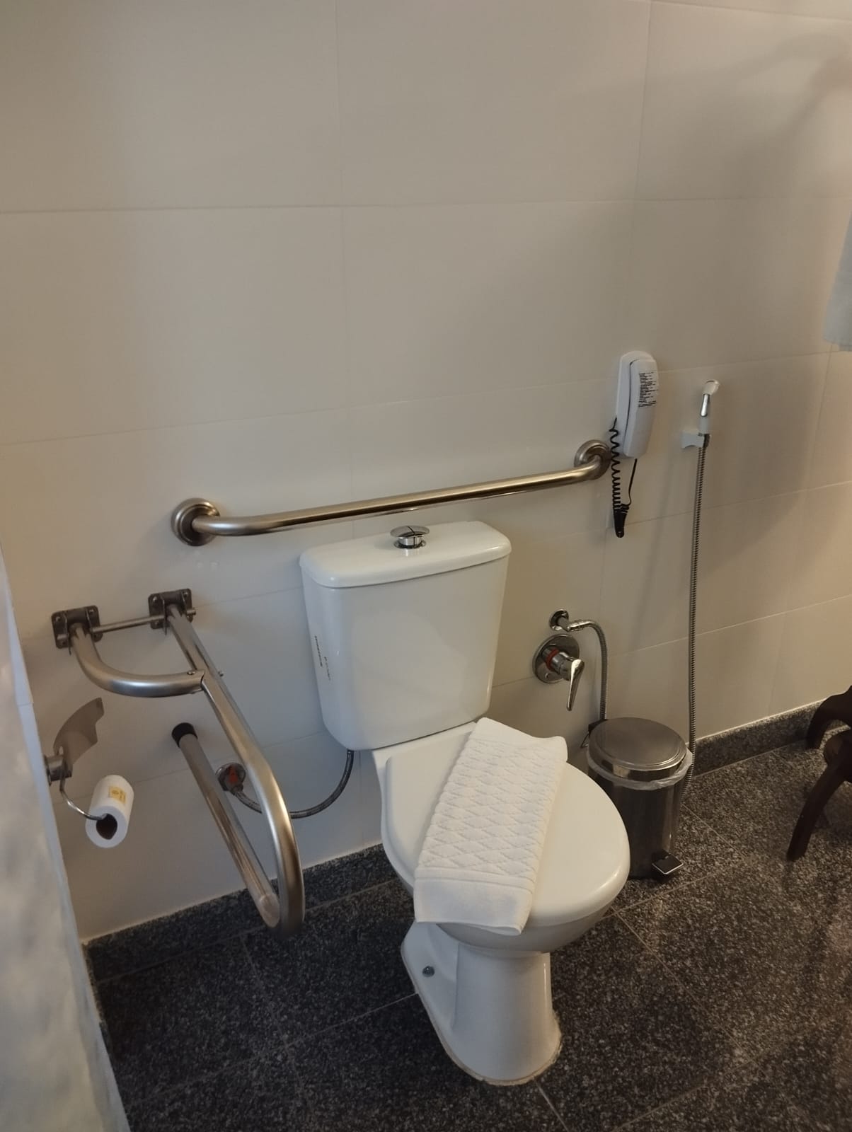 O hotel conta com apartamentos adaptados para pessoas com deficiências: banheiros, portas maiores e bancadas acessíveis.